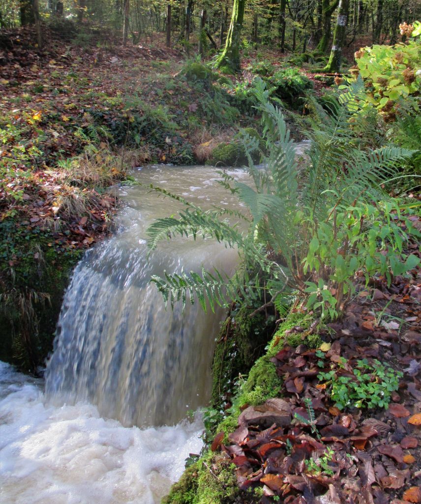 Il y a un mois, le ruisseau étant encore à sec. Mais voilà, le miracle de l’automne s’est à nouveau produit même si l’on n’osait plus y croire ! L’eau coule à flots et la vie renaît. Et les troglodytes mignons (que j’espère un jour réussir à photographier) ne semblent pas perturbés…
