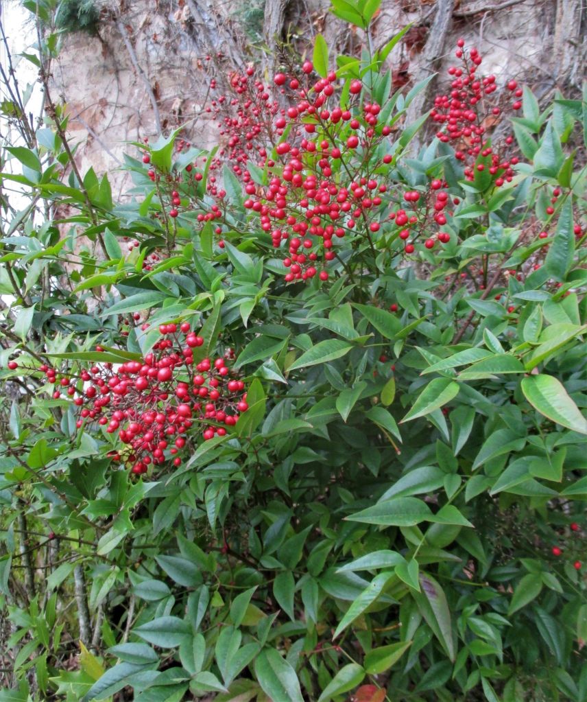 Au petit matin, le jardin était tout blanc de givre mais le soleil a vite réchauffé tout son petit monde. Le Bambou sacré resplendit de ses petites pépites écarlates…