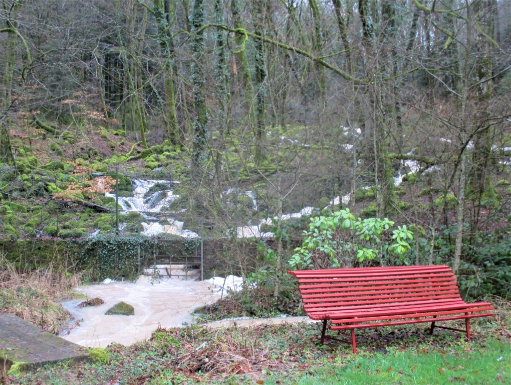 Cela fait plusieurs jours que la pluie tombe en abondance. Depuis le Col des Clochettes, l’eau dévale la colline à travers les bois et entre à grand fracas dans l’étang.