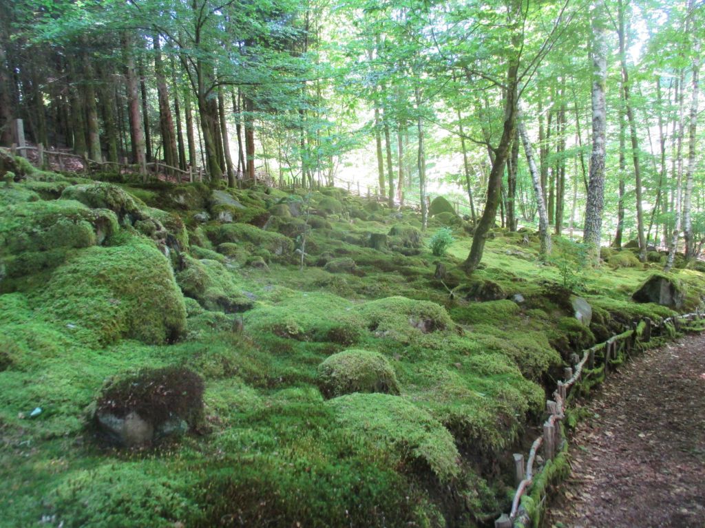 Le jardin de mousses inauguré l’an dernier a pris une belle densité. Le manteau de lichens a complètement arrondi les angles de l’éboulis de roches.