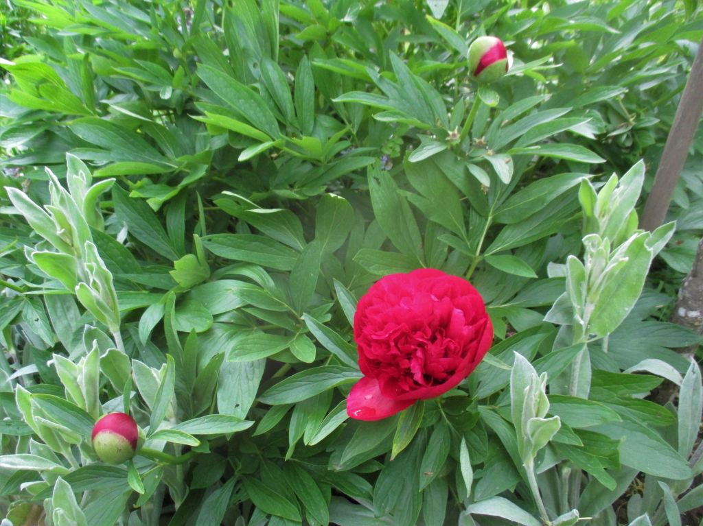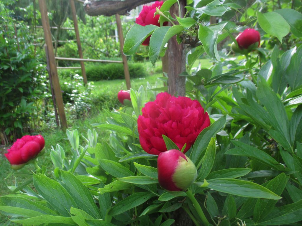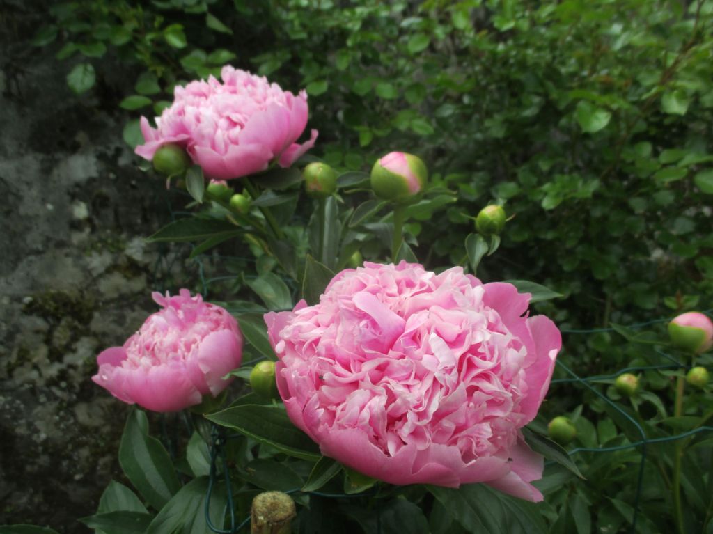 Comme chaque année, quand le beau feuillage des pivoines commence à s’épaissir, nous avons sorti les cages de « confinement ». Ces belles aux « fastueuses corolles » présument de leurs forces. Mais comme chaque année, en voyant les petites touffes de feuilles perdues au milieu de leur cage, nous nous sommes dit qu’elles étaient démesurées…