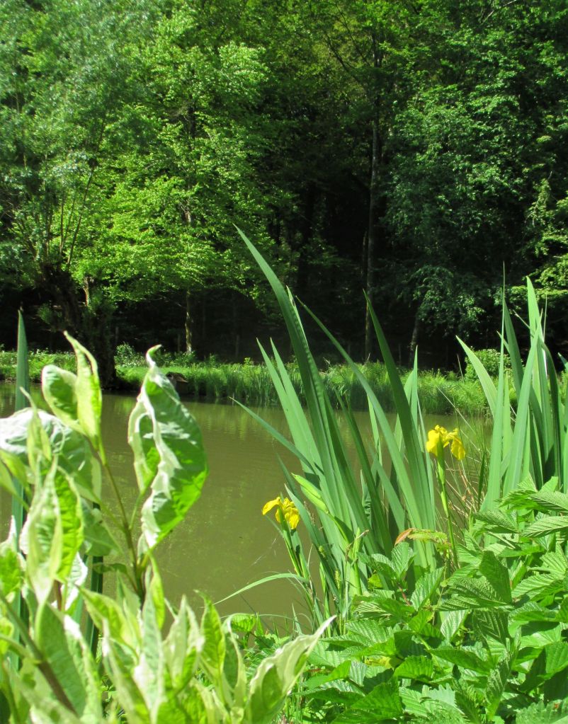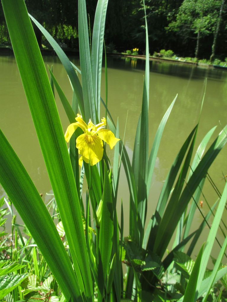 Est-ce parce que j’ai planté des iris des jardins au bout de la digue de l’étang que les iris des marais ont décidé de se multiplier sur la rive opposée ? Face à face très distancié où chacun peut faire valoir ses charmes : la prestance monumentale des premiers, la légèreté et la délicatesse des iris pseudacorus.