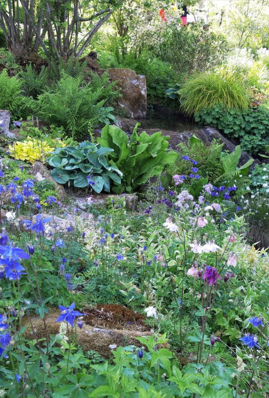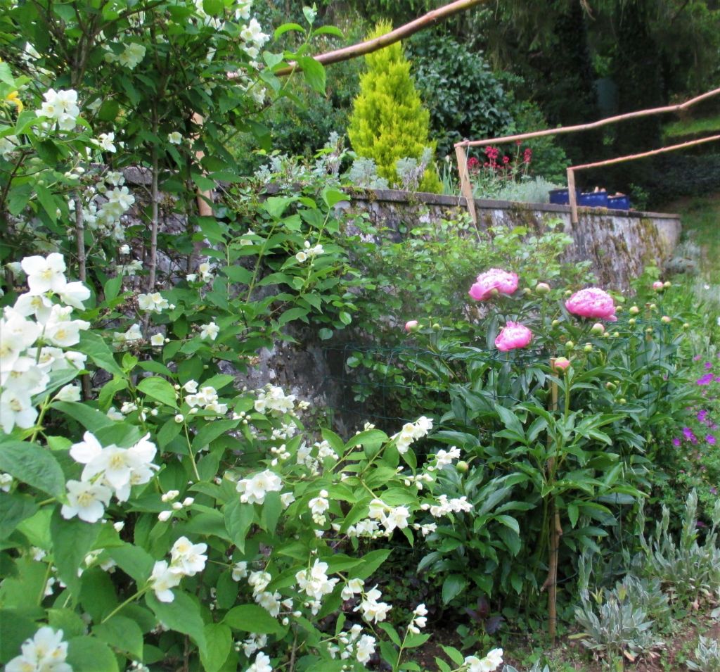 entre étang et ruisseau, rosiers et vivaces