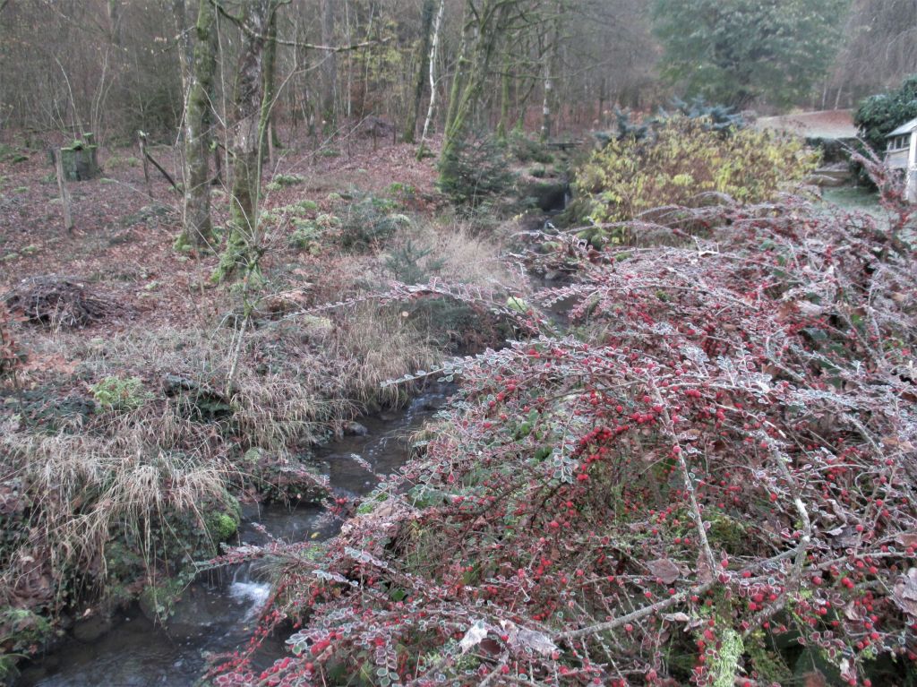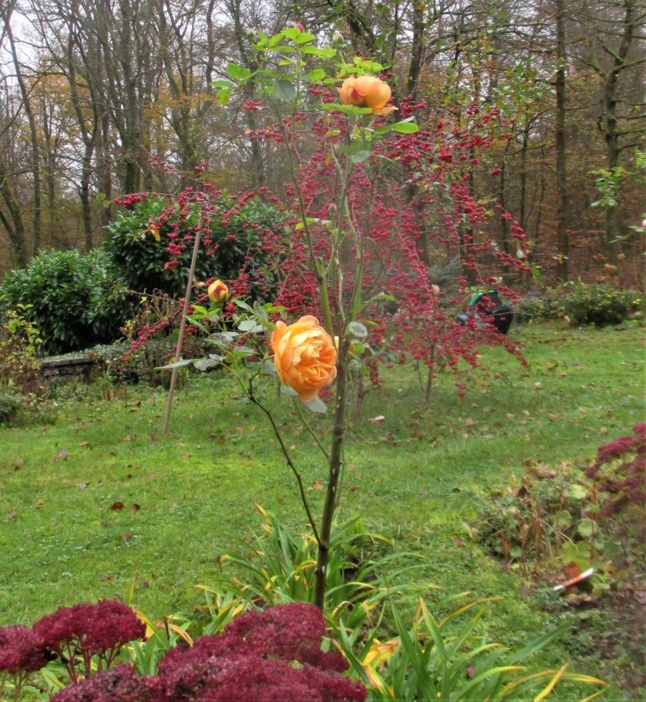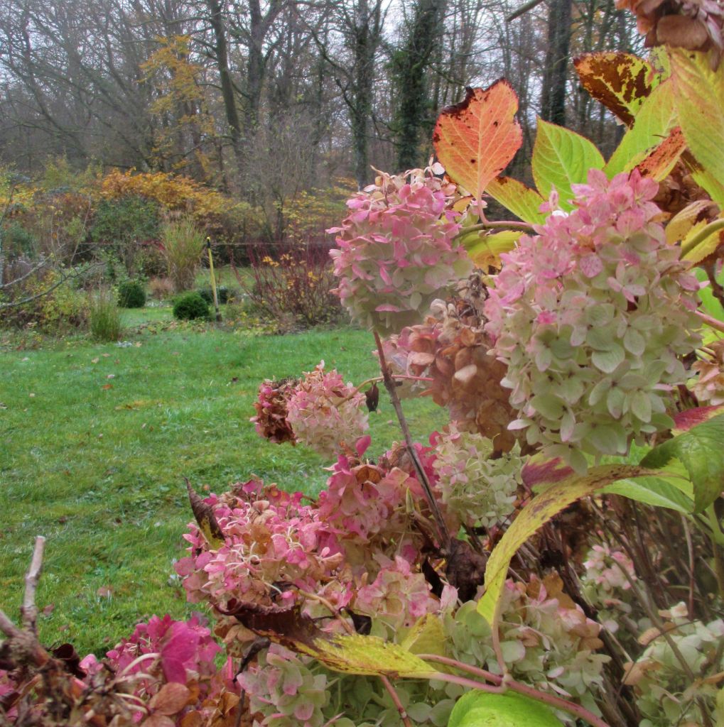 Mais c’est quand l’hiver approche que l’activité se fait plus intense, du moins l’activité visible du jardinier. Dans le trafic incessant des oiseaux, ce sont les mésanges bleues et les mésanges charbonnières les plus gourmandes en baies de vigne vierge. Ce qui n’échappe pas à l’oeil de notre petit lynx…