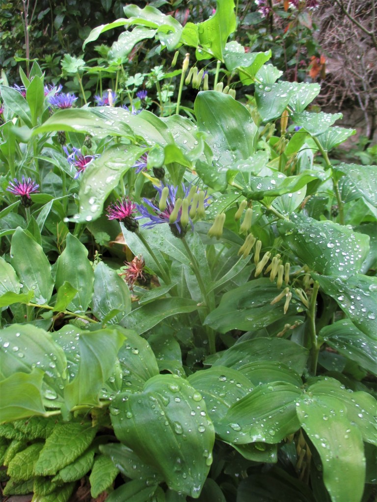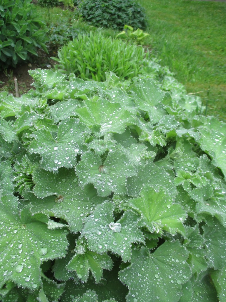 J’aime la pluie. Elle a le pouvoir de transformer le jardin en une nuit. Quelques petites feuilles de bourraches à peine écloses se transforment en quelques heures en massif. Les gouttes perlent sur les feuillages des hostas et tout n’est que parfum. Après une semaine de pluie, restera à passer la débroussailleuse…