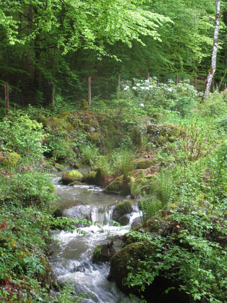 Pour le plus grand bonheur de la forêt et du jardin. Même dans le sous-bois, les rhododendrons s’épanouissent. Le ruisseau a repris son activité de torrent.