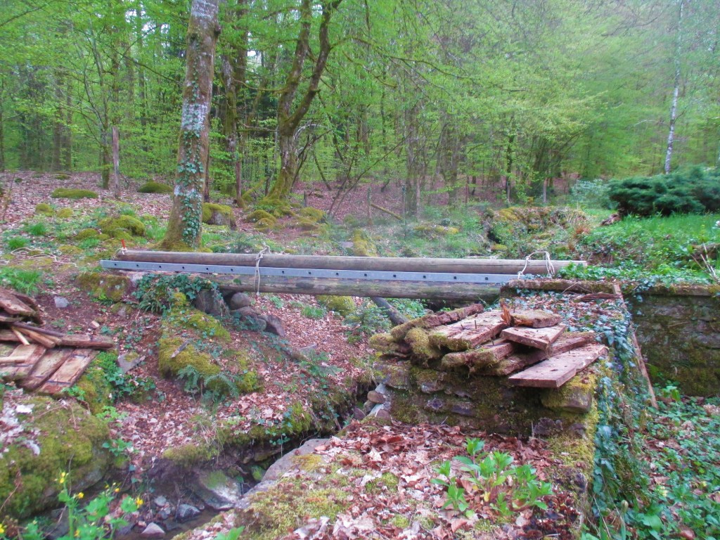 C’était un petit pont de bois, un petit pont jeté sur le ruisseau. Il avait son charme avec ses lames de bois patinées par la pluie, le gel et les lichens mais, petit à petit, le charme de l’ancien a laissé place à l’inquiétude. Même les poids plumes y allaient avec prudence.