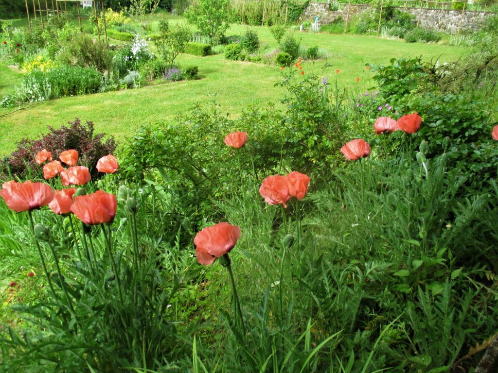 Les grands pavots d’Orient se sont étalées tout le long des marches de pierre de la rocaille. Leurs grandes corolles de papier de soie qui semblent si fragiles ont résisté aux averses et aux orages et leurs hautes tiges n’ont pas flanché.