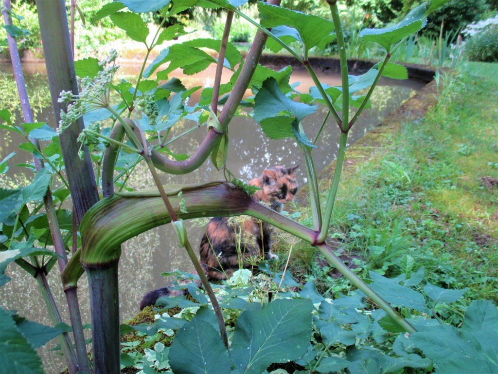 Une fois passée la déception (les monardes violettes et les lysimaques de Chine ont disparu), reste à admirer l’art des plantes sauvages à créer de l’harmonie. Au bord de l’étang, au milieu d’une petite plate-bande de lysimaques ‘Fire Cracker’ et de crocosmias, elles se sont installées avec une grâce tout instinctive : des iris des marais (aujourd’hui fanés), des eupatoires et, impériale, l’angélique…