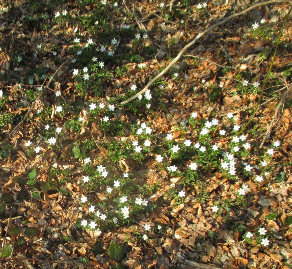 Un dimanche de mars au soleil, 22 degrés à l’ombre. Les oiseaux étaient au rendez-vous. Un vol de colverts au petit matin, quelques insultes du héron qui passait par là, puis les merles, les mésanges, les rouges-gorges, les grives, les bergeronnettes, les troglodytes mignons et, je crois, les rouges-queues. Une plume de chouette au pied du grand hêtre, les percussions des pics en plein travail dans la forêt et, au loin par-dessus les collines, un vol d’aigrettes blanches.