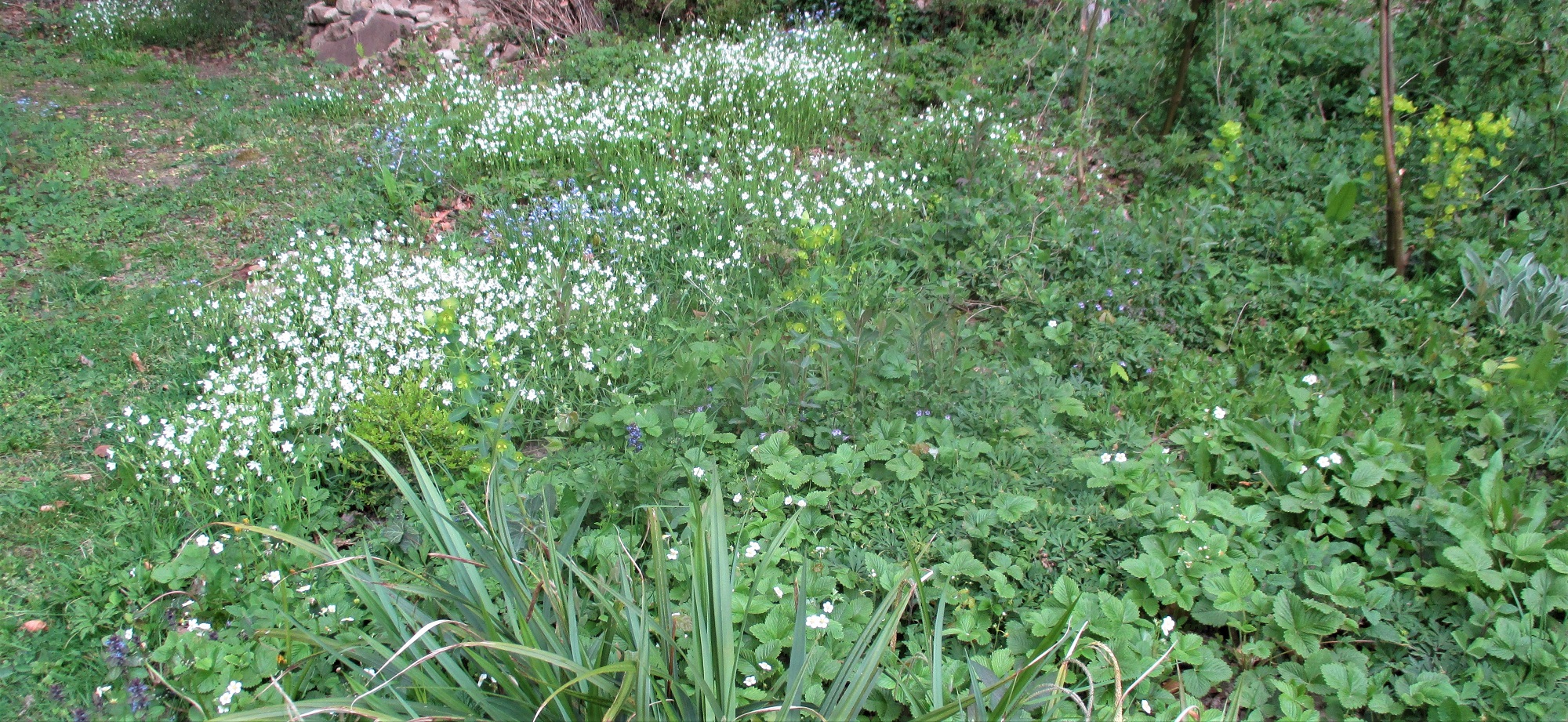 Au bord de la forêt, les silènes dioïques, joliment appelées compagnons rouges et compagnons blancs se battent avec les myosotis, les primevères sauvages et les euphorbes des bois. Arracher ? éclaircir ? Laisser faire la nature, sachant que dans quelques semaines, tout cela n’aura plus du tout la même allure ?