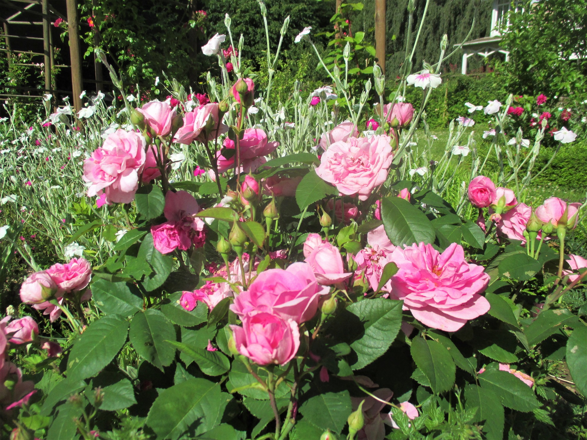 Et dire qu’en octobre dernier, je voulais les brûler ! Il ne leur restait plus une seule feuille saine malgré les effeuillages sélectifs, les pulvérisations régulières, les nettoyages du sol. C’est probablement la météo qui a sauvé les rosiers. J’étais trop découragée pour travailler au jardin et mettre la menace à exécution.