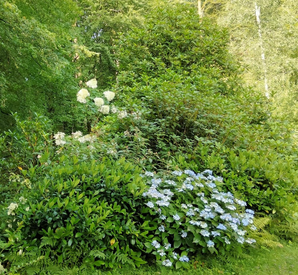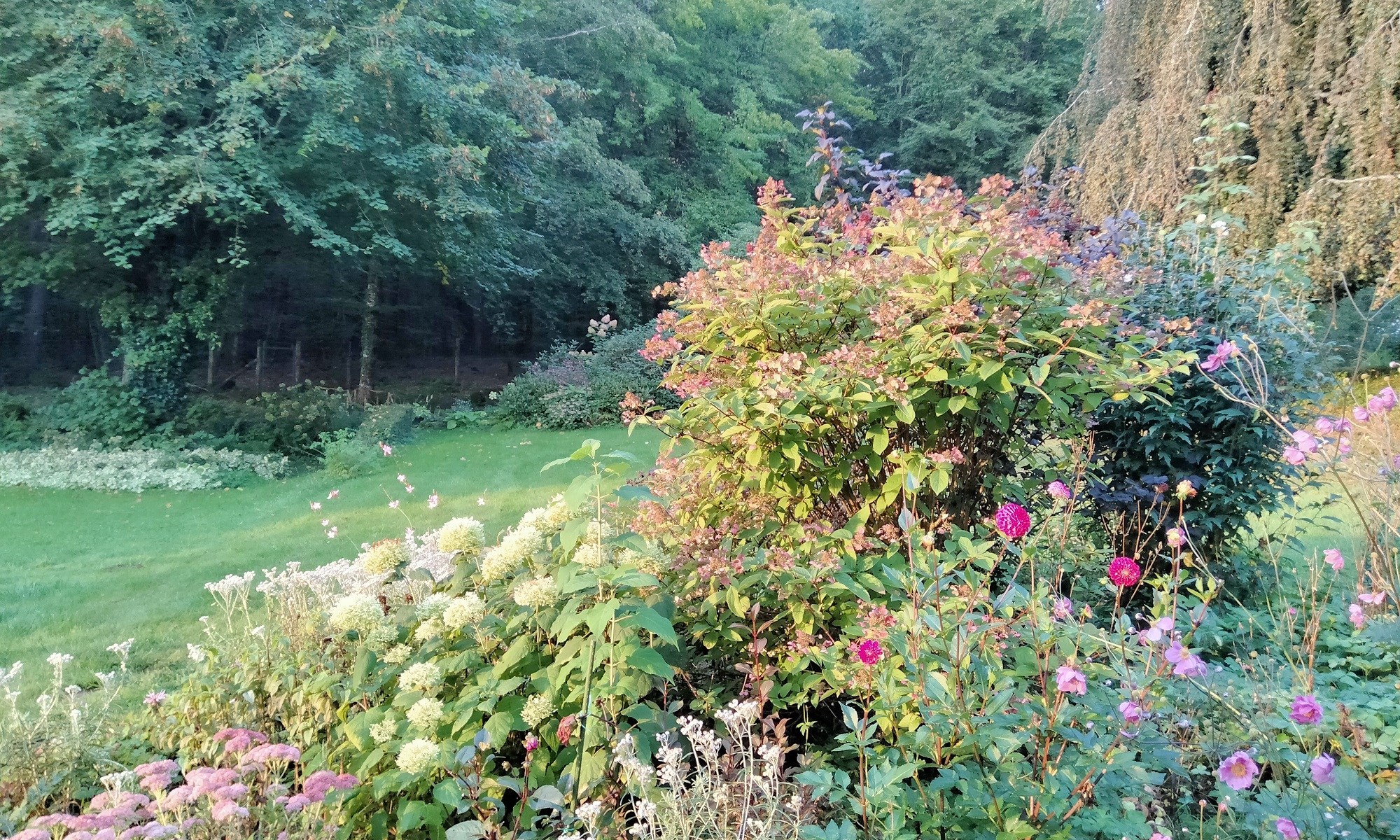 …et les vieux hortensias, des macrophyllas dont on ignore le nom, virent au rouge incandescent avant de passer aux pourpres violacés.