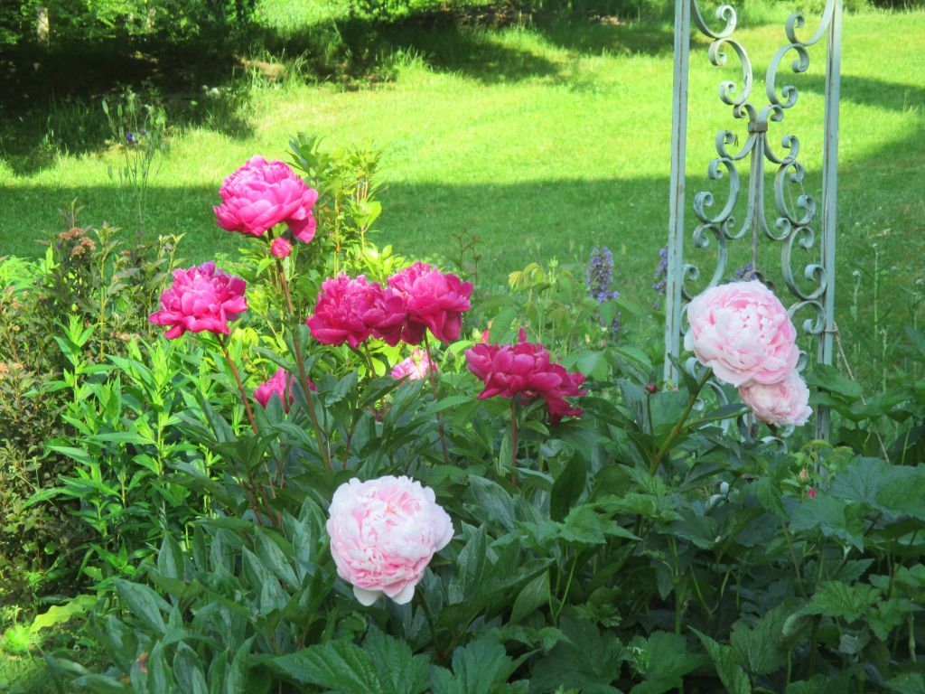 Comme chaque année, j’ai sorti mes « cages à pivoines ». Plus assez nombreuses pour soutenir tous les éclats de division de souches qui ont pris de l’ampleur sous les pluies de ce printemps. Bien sûr, ce corsetage est pour leur bien mais elles semblent tellement heureuses de s’abandonner au soleil, au vent, à la rosée…