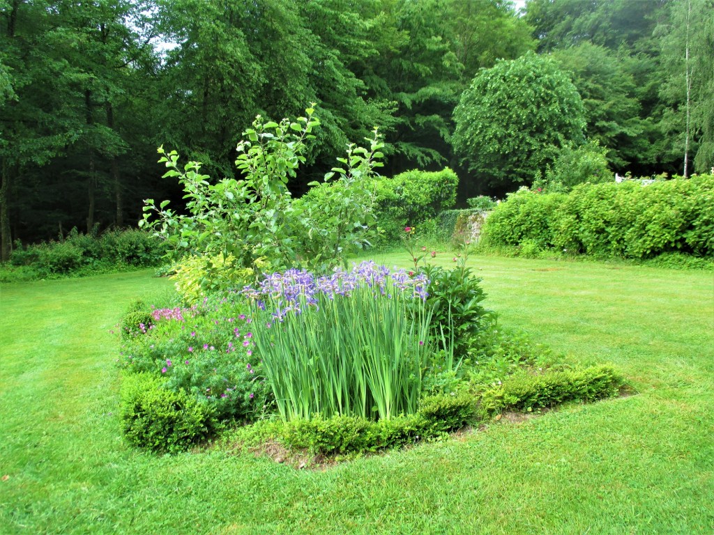 L’ancien potager, situé dans la partie basse du jardin, a retrouvé un peu de son « utilité » d’antan. Des carrés dessinés autour d’un petit bassin, accueillent arbres fruitiers, fraisiers et framboisiers mêlés au rosiers et aux vivaces. Menthe, bourrache, lavande, santoline, et tanaisie parfument le jardin. Reste à apprendre à en faire bon usage…