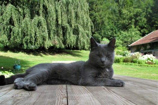 Abandonné pendant quelques années, le jardin a été « restauré » dans les années 60. Depuis il a été bien entretenu, tout en netteté et sobriété. Depuis notre arrivée, il s’enrichit de couleurs, de nouvelles essences et de petits détours surprenants. Entre diverses inspirations, nous essayons de préserver quelques notes de ces années heureuses où les pépiniéristes lorrains inspiraient les artistes comme les jardiniers. La jeune glycine, plantée il y a cinq ans, a déjà pris de l’ampleur entre sa treille et la vigne vierge de la maison…Népétas, géraniums, heuchères et valérianes succèdent aux tulipes, iris et muscaris. Au bord du ruisseau, le grand rhododendron trentenaire est aujourdhui entouré de skimmias et d’hydrangeas qui ne demandent qu’à prendre du volume… La maîtresse de la maisonEn deux ans à peine, les rosiers Bajazzo ont pris de la hauteur !La reine du jardin